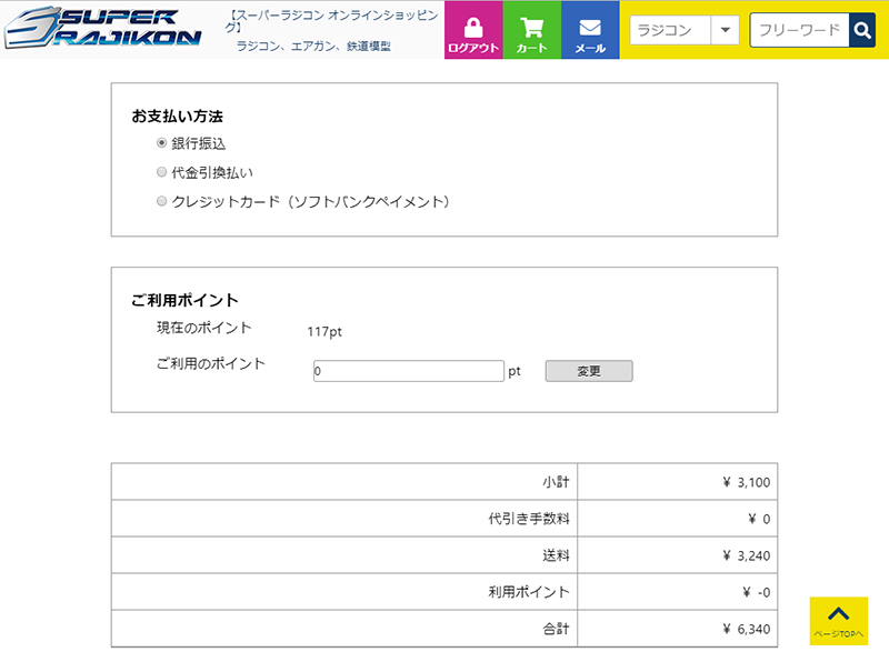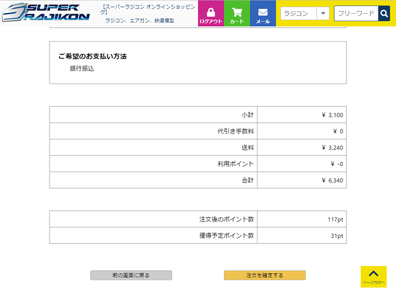クレジットカード、PayPayでお支払いの場合、ポイントは付与されません。