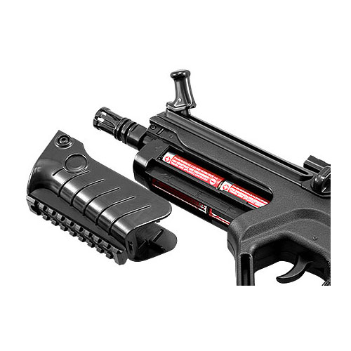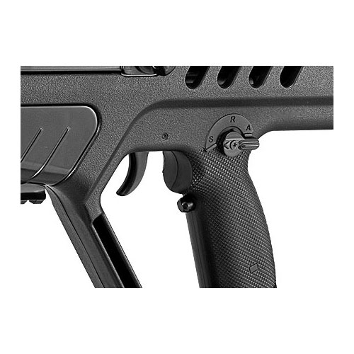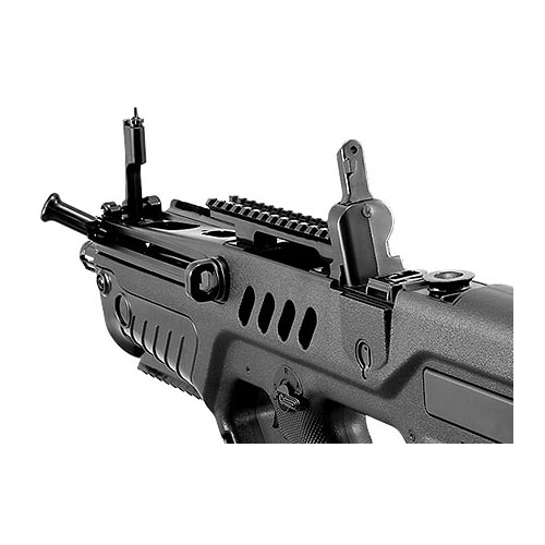 ●リアルなディテール:タボールならではの特徴的なパーツ形状をリアルに再現。オプション搭載に必要な18mm幅のサイドレイル&トップレイルに加え、本物ではオプションとして用意されているアンダーレイル付きの改良型ハンドガードを装備。また、折りたたみ式のフロント/リアサイトのほか、ボルトハンドルやボルトリリースボタンも可動ギミックとして再現しています。