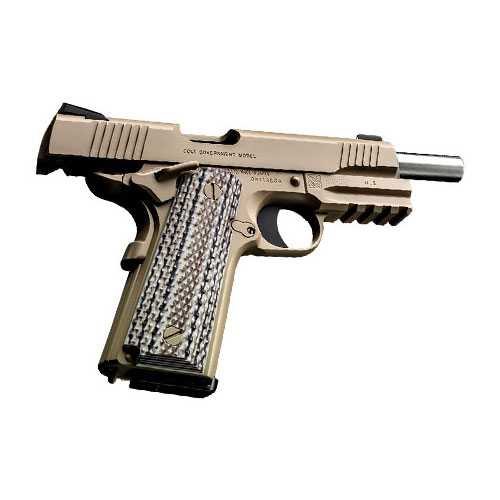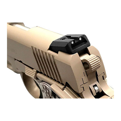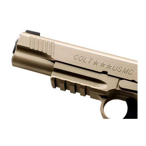 各部には命中精度を追求するカスタムガンなみの加工を施し、新たにレイル一体型フレームやG10素材の特徴的な積層グリップ、スライドには間隔が広いセレーションを採用。また、大部分の外装をタンカラーで仕上げるなど、MEUピストルの後継としてふさわしいモデルとなっています。