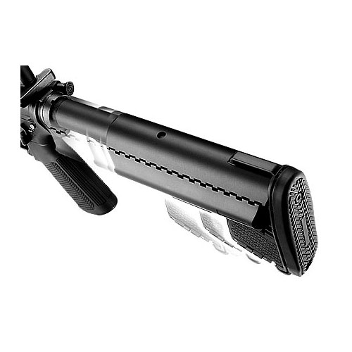 ●抜群の剛性を実現:R.A.S.の他にも、レシーバーやアウターバレル、バッファーチューブなど様々なパーツに金属素材を採用。全長705mmという取り回しのよさに加え、ゲームユースにも安心の剛性を実現しています。
