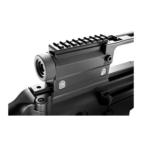 ●マウントレイル標準装備:キャリングハンドル上面や、ハンドガード下部のアンダーマウントレールには、ドットサイトやフォアグリップなど20mm幅のレイルに対応したオプションが装着可能です。