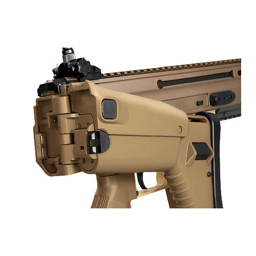 ●リアルなディテール:最新アサルトライフルのスタイルをリアルに再現。オプション搭載に必要な18mm幅のマウントレイルを4つ備え、取り外し可能なリアサイトを装備。折りたたみ式のストックは長さを6段階に調整でき、チークピースの高さも調整可能です。さらに可動式のボルトハンドルが本物らしさを演出します。