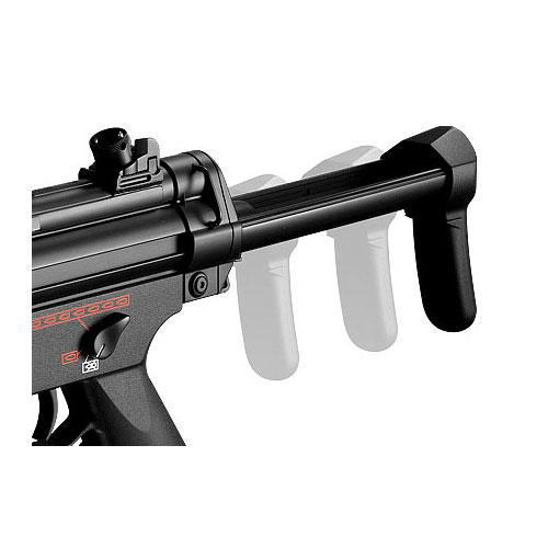 ●リアルなディテール:MP5A5のスタイルをリアルに再現し、こまかい調整が行えるリアサイト、そして伸縮可能なストックなど、18才以上用電動ガンに匹敵するリアルさです。