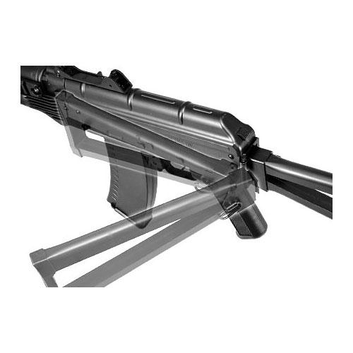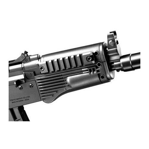 ●リアルな実物スケール:本物と同じ1/1スケールでAKS74UベースのCQBカスタムを再現。コッキングハンドルを引いてのコッキングや、おりたたみ可能なストックといったギミックも再現しています。