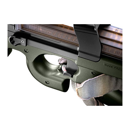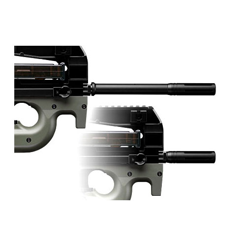 PS90のロングバレルやO.D.(=オリーブ・ドラブ)色のボディを再現。また、サバイバルゲームでの実用性を重視し、本物には無いフルオート発射機能とバレル・チェンジシステムをプラス。秒間25発もの連射力とショートバレルの取り回しやすさで、ツールとしての性能の高さが実感できるモデルとなっています。