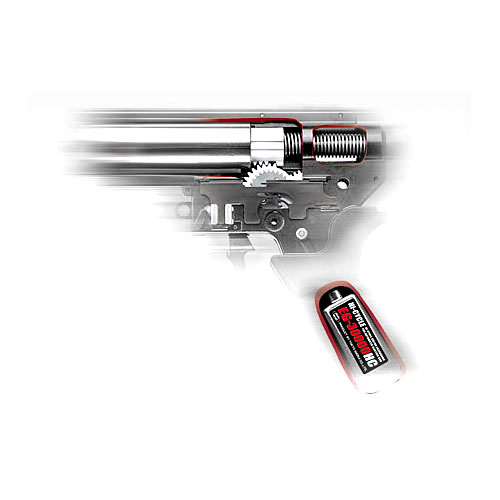 ●毎秒25発の超速連射を実現:ニッケル水素8.4VミニSバッテリーで、驚きの連射速度を実現。ハイサイクルの高速回転を支えるため、ピストンやギアなど各部に専用のカスタムを施し、国産最高級ベアリングを使用した専用のハンドメイドモーターを採用しています。