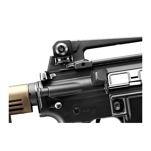 ハンドガードとグリップ、そしてストックのタンカラーは、特に砂漠地帯での戦闘で迷彩効果を発揮。近年、中東などで活躍したモデルを再現しています。