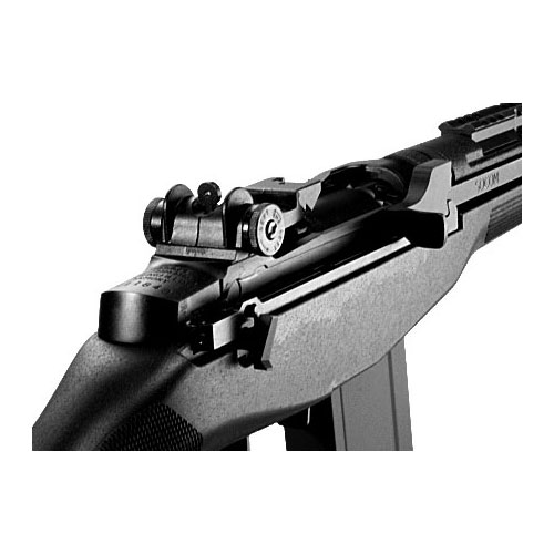 ●新仕上げのブラックストック:スリップ防止のため、ストック全体にサンドストーン・フィニッシュを施しました。光の反射をおさえた漆黒のストックが、M14ソーコムの精悍さをいっそう引き立たせています。