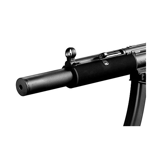 数多くのバリエーションをもつMP5に1978年から新たに追加されたモデルが、サプレッサーを装備したSD5とSD6です。サプレッサーとは発射音をおさえるマズルアクセサリーで、夜間やシークレット・オペレーションなど相手にさとられずすばやく行動しなければならない場合に必要不可欠といえます。