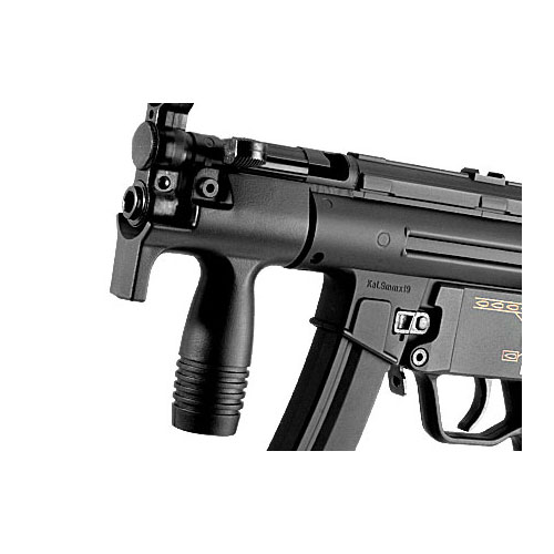 ●ハンドガード一体型フォアグリップ:マガジン前方のフォアグリップも忠実に再現。ストックが無くても安定した発射が可能です。また、銃口下のシールドによって、手が銃口側へはみ出すこともありません。