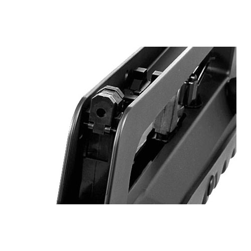 ●独特なスタイルを再現:独特なバレル形状や大きくえぐれ、さらにホールドしやすくなったハンドガード、グリップ底部からトリガーをかこむように追加された大きなトリガーガード、オープンサイトを配したキャリングハンドルなど、ファマスSVのフォルムを忠実に再現。スパイク付きバットプレートにはラバーコーティングを施し、発射時の安定感も抜群です。