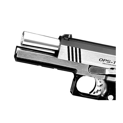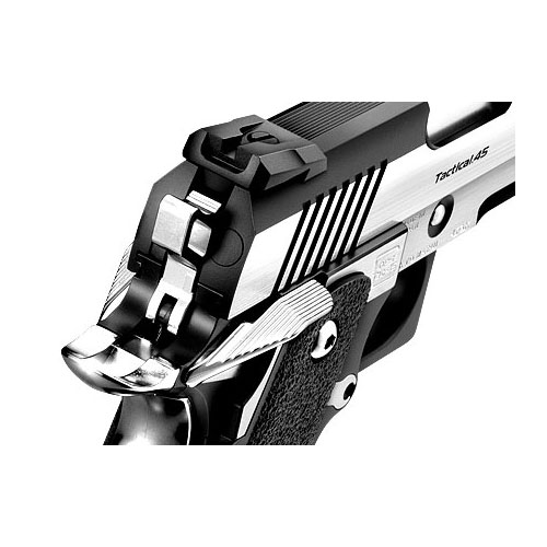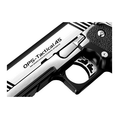 側面にヘアラインを施したツートンカラーのボディに、操作性を向上させるパーツをチョイス。従来のクロームステンレスモデルからイメージを一新し、ハイキャパシリーズの利点を踏襲したスペシャルなステンレスモデルです。