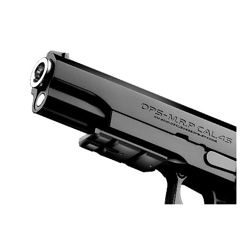 ●アンダーレイル付属:専用工具でフレームに穴を空け、しっかりとネジ留め可能です。現代戦闘に欠かせないピカティニー規格(20mm幅)対応のフラッシュライトを装着することができます。