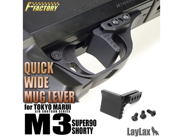 「M3 クイックワイドマグレバー」は、ワイド化したレバーをトリガーガード内に移動する事で、人差し指でのクイックリリース操作が可能になり、2つのタイプの取り付け位置、そして左右兼用である為、射手を選ばない設計で仕上げています。