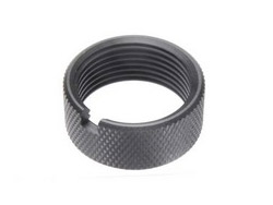 次世代AKシリーズにサイレンサーを取付ける場合、独特なデザインのフラッシュハイダーを外して、サイレンサー用のネジが切られたマズルに取付ける訳ですが、フラッシュハイダーが付いていたネジ部分はそのままむき出しになってしまいます。 これでは、せっかくカッコイイサイレンサーを取付けても台無しです。 しかし、ネジカバーを付ければ、ホレこの通り! ずいぶんイイ感じになりました(^^)/