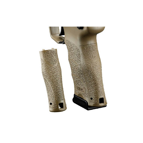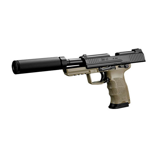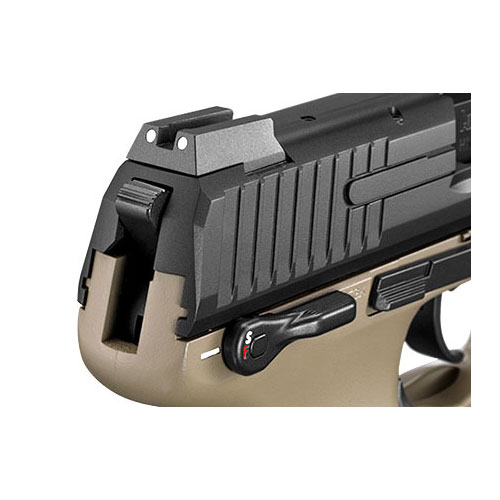 また、専用に新規作成したフロント/リアサイトや、アンビタイプのセフティ&デコッキングシステム、そしてタンカラーのフレームを採用したツートーンカラーのボディなど、HK45の実射/作動性能を受け継ぎながら、一味違ったモデルに仕上がっています。