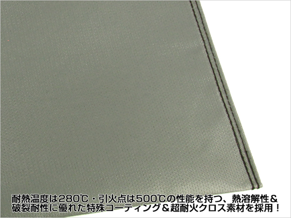 耐熱温度は約280℃、引火点は500℃の性能があり、熱溶解性&破裂耐性に優れた特殊コーティング&超耐火クロス素材を採用!