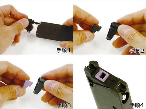 ガスブローバック・ハンドガンは、ガスの圧力を用いてBB弾を発射、次にスライドを後退させ次弾を装填します。簡単に言えばこれだけですが、ガスの“流量”“瞬間圧力”“流速”のバランスが成り立つ事で、実銃同様の発射プロセスを踏むリアルなギミックと反動が生まれます。そのパワーソースであるガスを銃へ送り込む為に、最も要となる部分がマガジンと銃の接点であるガスケット部です。瞬間的にマイナス温度にもなるガスの放出は、ガスケット部を冷気で一気に硬化させる為、密着性が低下しガス漏れを引き起こし易くなります。またガスを漏らさない密着テンションと、スライド可動時の摺動バランスをも両立しないと、ブローバック時のリコイルや作動性、パワーにも影響を及ぼします。さらにガス放出口のサイズや内部形状、位置関係も重要で、大きければガス流量は上がりますが、逆に流速が下がるのために吐出バランスが崩れ、その逆の場合も例外ではなく、結果、弾速の低下や着弾のバラツキ、燃費の悪化等をも引き起こす場合があります。 このアイテムは、冷気に強い耐寒グレード素材の採用で、柔軟かつ精妙な圧着テンションを実現!また特殊なスリップ剤を素材に混合し、摩擦抵抗の低減とオイルが留まり易い特殊表面処理を施す事で、優れた滑り特性とオイル切れの寿命が格段にUPしています!もちろん放出口サイズや穴位置関係は、膨大な弾速テストデータとブローバックフィーリングを元に決定!