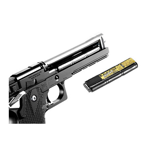 ●高い拡張性:フレームにはピカティニー規格のアンダーレイルを装備。20mm幅のレイルに対応した各種フラッシュライトが装着可能です。また、別売のマズルアダプターを装着することで、サイレンサーやドットサイトなどの搭載が可能となります。