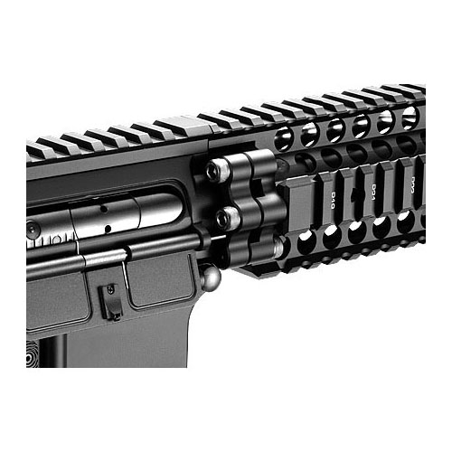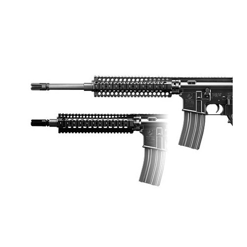 アメリカ軍の制式採用経験が豊富なダニエル・ディフェンス社の正式承認のもと、10インチ/ライトレイルを搭載したレシーライフルが次世代電動ガンでラインナップ。CNC切削加工で完全再現したレイルは、レーザーによるナンバリングや刻印を施した本格仕様となっています。