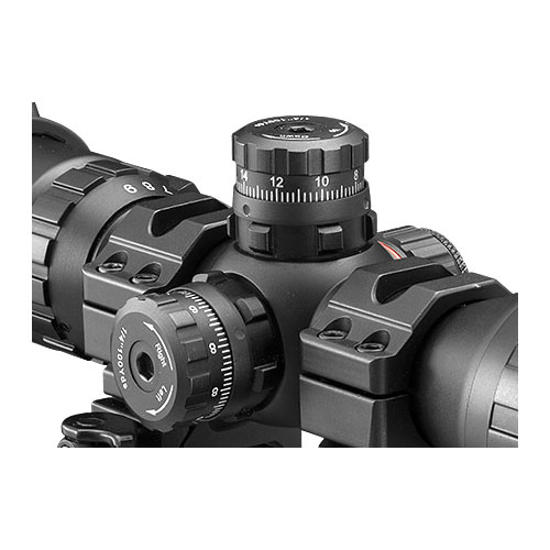 ●レティクル調整:イルミネーション切り替え(赤・緑)、輝度の無段階調整、そして上下左右位置調整をダイヤル操作でカンタンに行なうことができ、状況に応じた最適な設定が可能です。また、上下および左右の調整ダイヤルには誤作動を防止するロッキング・リングが組み込まれています。