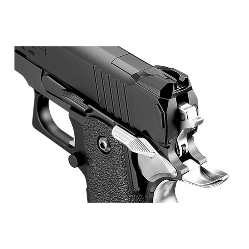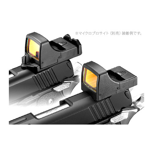 専用デザインのスライドを新規に製作し、マイクロプロサイトを“より低い位置”へ“マウント無しに装着”することが可能となりました。また、内部メカの見直しによる作動性向上、マイクロプロサイト装着も考慮した操作性の向上など、従来のガスブローバック・ハイキャパシリーズをベースとしながら、随所にアップグレードを施したモデルとなっています。