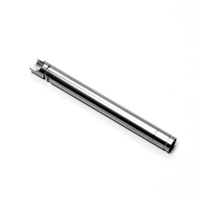 KM製品の旗艦的商品「TNバレル」は、厳選された真鍮材を使用し、独自のコーティング「TNコーティング」を施し、コーティングの仕上がり厚を中空内部で電着調整する独自製法で内径6.04mmを基準に内径誤差の極めて少ないバレルが出来上がります。