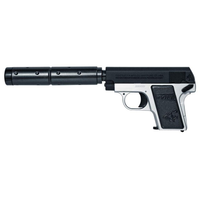 ポケットハンドガン 25オート シルバーフレーム サイレンサー付 [CRW-13827]]