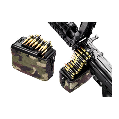 ●ボックスタイプの連射マガジン:装弾数1,000発、電動巻き上げ式のボックスタイプマガジンが付属します。