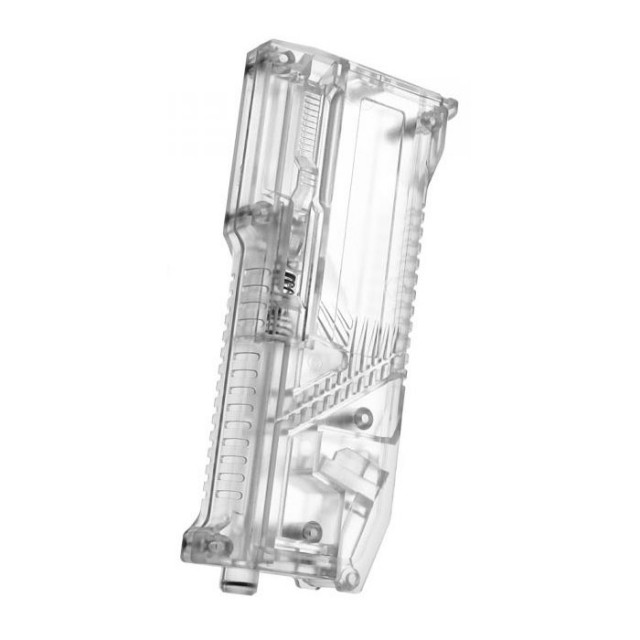 ボディにはBB弾の流れや残弾数の確認がしやすいクリア素材を採用!また、マガジンポーチ等に入りやすいサイズに設定している為、携行に便利です。