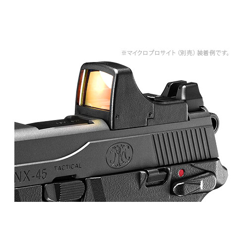 ●別売マイクロプロサイト対応:スライドは、「マイクロプロサイト(別売)」が装着可能な専用設計。スライド後部のカバーを取り外せば、ダイレクトにマイクロプロサイトを取り付けることができます。また、フロント/リアサイトはトールタイプのナイトサイト仕様で、マイクロプロサイト越しにもサイティングが可能です。