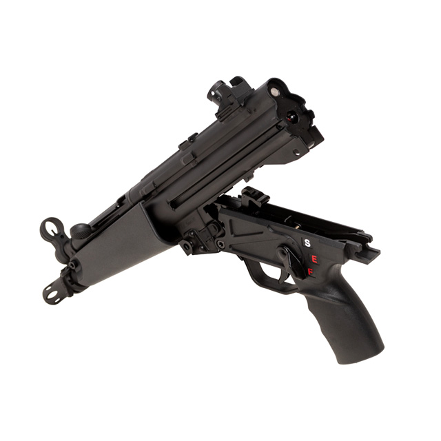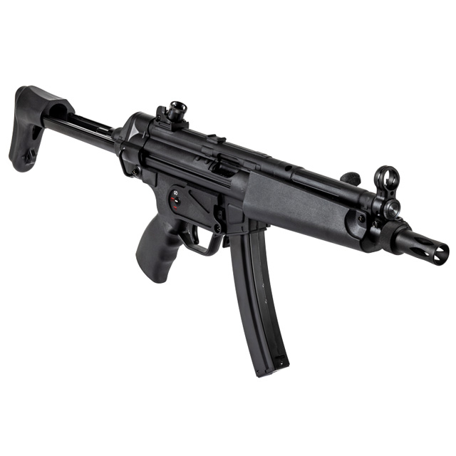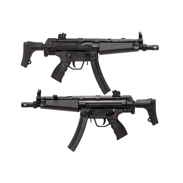 高精度サブマシンガンの定番であり各国法執行機関にて採用されている H&K MP5 シリーズ。台湾 SRC が CO2GBB としてモデルアップ、アッパーレシーバーは実銃同様のスチールプレスで、ロアレシーバーは「 S ・ E ・ F 」の初期型を再現。