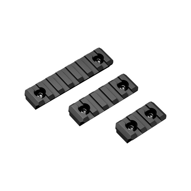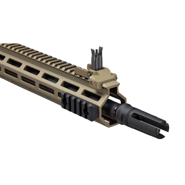 ハンドガードは、レイルシステム「M-LOK(エム-ロック)」を採用した、スーパーモジュラーレイル(SMR)MK16 M-LOK DDCを再現。幅20mm(ピカティニー規格)のM-LOKレイルは3スロット、5スロット、7スロットの3種類が各1枚付属。付属の六角レンチで簡単に脱着可能です。