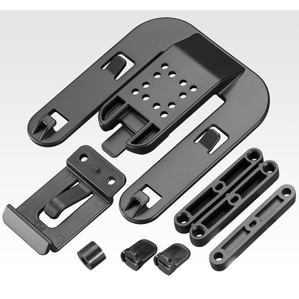 ガン/マガジンホルスター(IWBで組立て済み)、フック(S)、モールシステム用フック、フラットジョイント、シングルジョイント、ネジ止めジグ×2、ラバーブッシュ(L)、取扱い説明書
