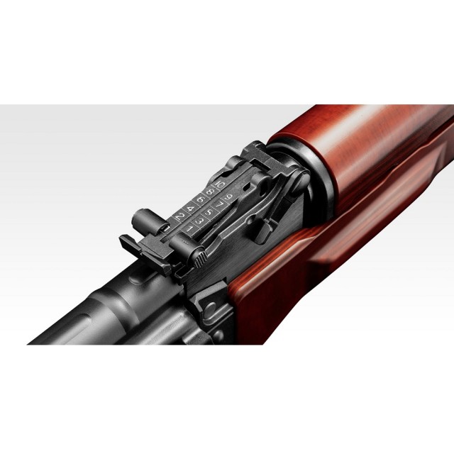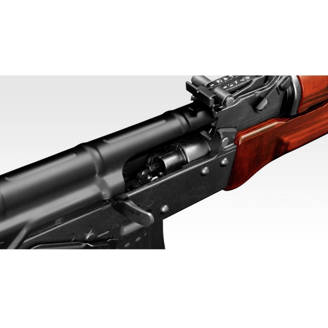 樹脂製のハンドガードとストックに特殊印刷を施すことで、本物さながらの木目を表現。また、レシーバーの質感、塗装によってベークライト素材のように仕上げたグリップ、本物同様のスチールプレス製レシーバーカバーなど、外観の再現度を追求しています。