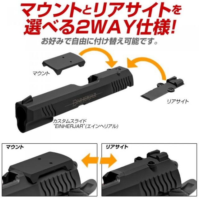 またドットサイト用のマウントとリアサイトが付属し、用途や好みによって交換することが可能です。