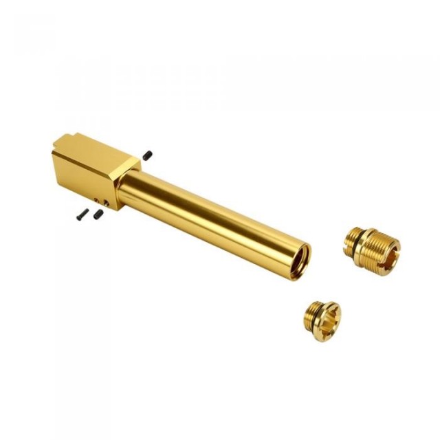 東京マルイ製ガスブローバックハンドガン グロック17Gen.3、18C、22およびCarbon8 STRIKER-9に取り付けができるメタルアウターバレルです。高剛性アルミ合金材を採用しノンリコイル仕様とすることで安定したシューティング性能を発揮。マズル先端を付け替えることで、ノーマル形状とSAS形状をお好みで選ぶことができ、弊社MODE-2の製品をはじめとした14mm逆ネジ対応の各種アタッチメントの装着が可能です。また、マズル取り付け部はM11正ネジとなっており、同サイズのアタッチメントも装着可能です。