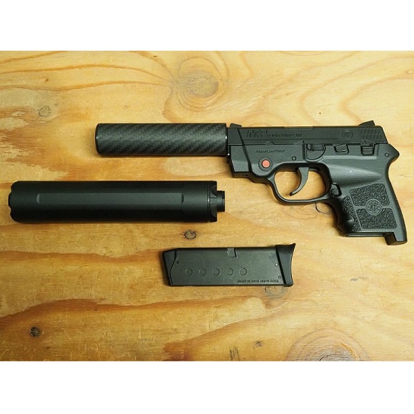 付属のM14xP1.0逆ねじ変換アダプターをサプレッサー側に装着することで、銃本体に様々なサプレッサーを装着できるようになります。