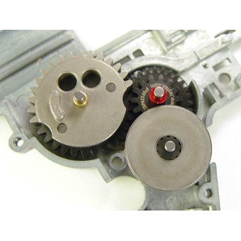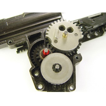 なかでもパワーソースとリコイルエンジンを同時に作動させるギアやピストン部に至っては、最も高負担を強いられており、通常電動ガンに比べ1/2~1/4まで耐久寿命が低下(当社テスト比)しています。