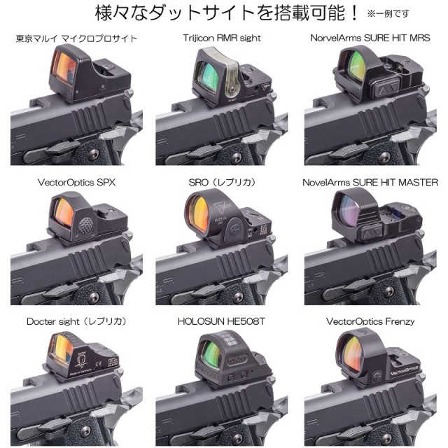 マルチマウントの名の通り、RMR規格、ドクターサイト規格、MRS/SURE HIT MASTER等多くのマイクロドットサイトが搭載可能となっております。