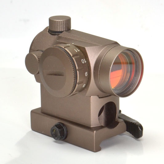 「エイムポイントT1タイプのドットサイト」は数多く存在しますが、その中でもドットサイトとしての性能がピカイチなのがノーベルアームズのコンバットT1です。針の先のような小さいドットが鮮やかに輝く視認性の良さだけでなく、M4などのレールに装着する際に必要になるハイマウントや、レンズを被弾から守るキルフラッシュなどが最初から全部付いてくるお買い得セットなのもありがたいところです。