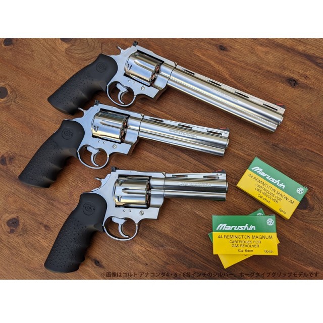 本製品は最高にリアルな形状のカートリッジと、安全対策も万全なシリンダーから覗く弾頭が、リアル派をも唸らせる、究極のリボルバーの誕生となっています。汎用性の高い6mmBB仕様に弾頭はアルミ製、ケースは真鍮製とした「Xカートリッジ」は外観のリアルさだけではなく、重量アップにも貢献。実銃同様のアウターバレル刻印を再現し、2021年に復活した実銃ANACONDAのHOUGEグリップをモデルアップ。