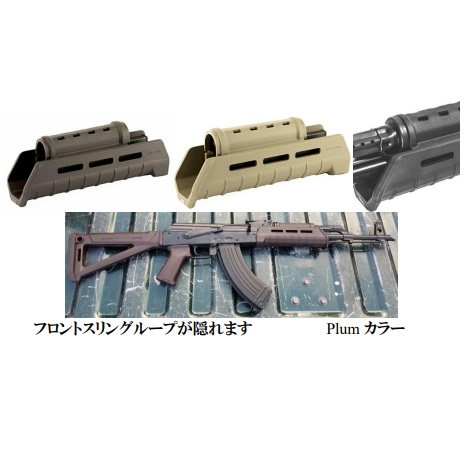 ・マグプルAKMハンドガードと比べ、フロントスリングループ部が覆われた左右対称のデザインが特徴です