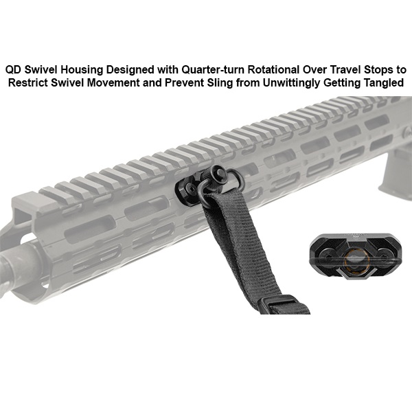 • QD Swivel Housing Designed with Quarter-turn Rotational Over Travel Stops to Restrict Swivel Movement and Prevent Sling from Unwittingly Getting Tangled
