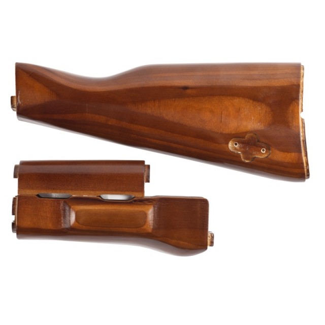 東京マルイ AKM ガスブローバック用 リアルウッドハンドガード&ストックセット。合板から削り出された本物の木ならではの質感。