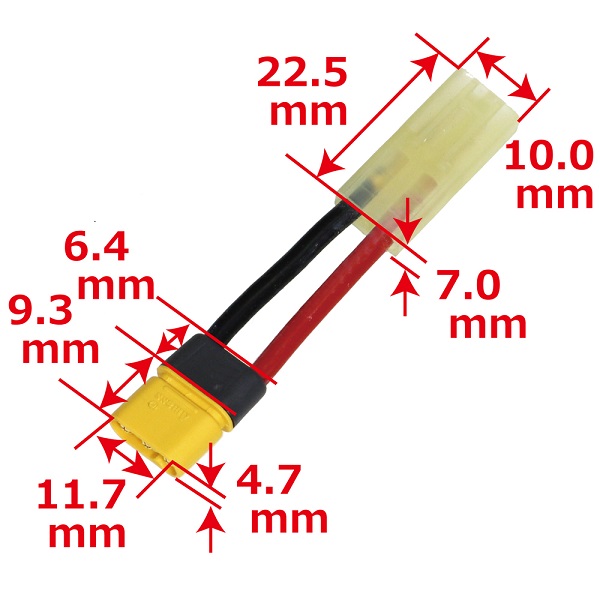 説 明:マルイ次世代型MP5に使用されるノンスパーク3連ストレートコネクター付バッテリーとミニタイプコネクター付充電器を繋げるための変換コネクターです。