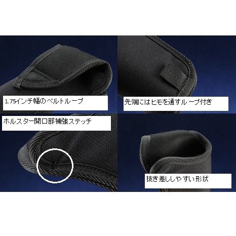 □ホルスター先端にレッグタイ用ループ付き