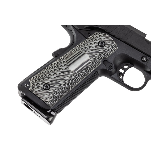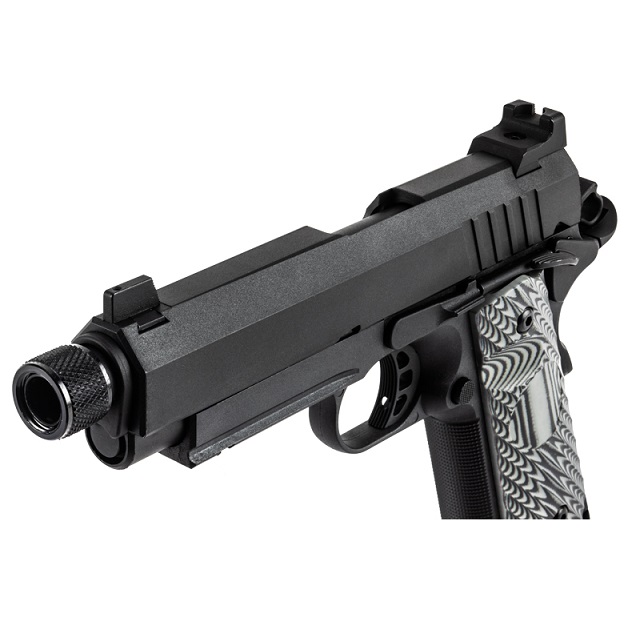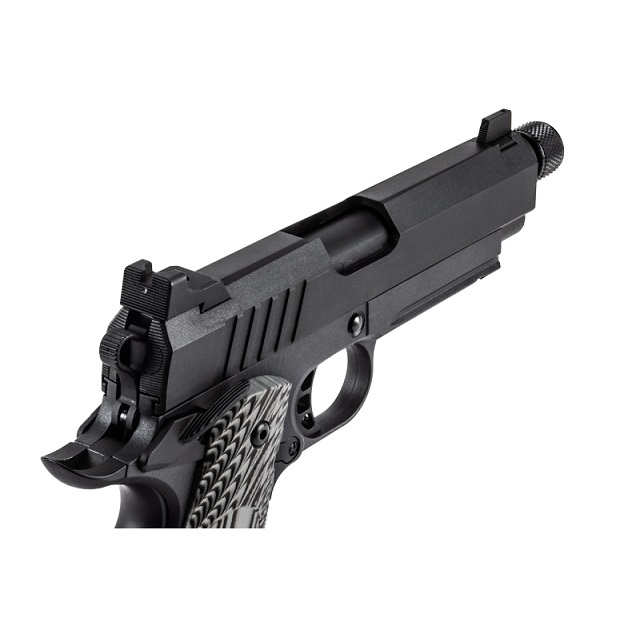 NIGHTHAWK CUSTOMのSILENT HAWKをCO2ガスガンとしてモデルアップした『BN-SILENT HAWK CO2GBB』。1911 CO2ガスガンシリーズだが、内部パーツの一部を除き、ほとんどのパーツを新設計することでSILENT HAWKのスタイルを忠実に再現。マガジンも新設計で気化スペースの増量で連射時の冷えを対策、同時にダブルカラム化により装弾数27発にアップ(従来の1911 CO2マガジンと互換)。また、BATON CO2GBBシリーズはこのBN-SILENT HAWK CO2GBBから新設計のBNホップアップパッキンを採用し、ホップが安定しホップ調整がより容易になった。