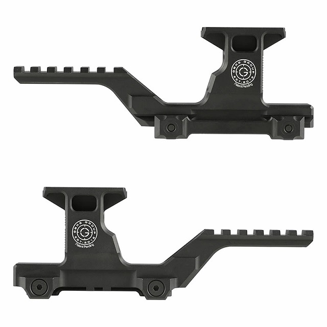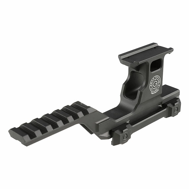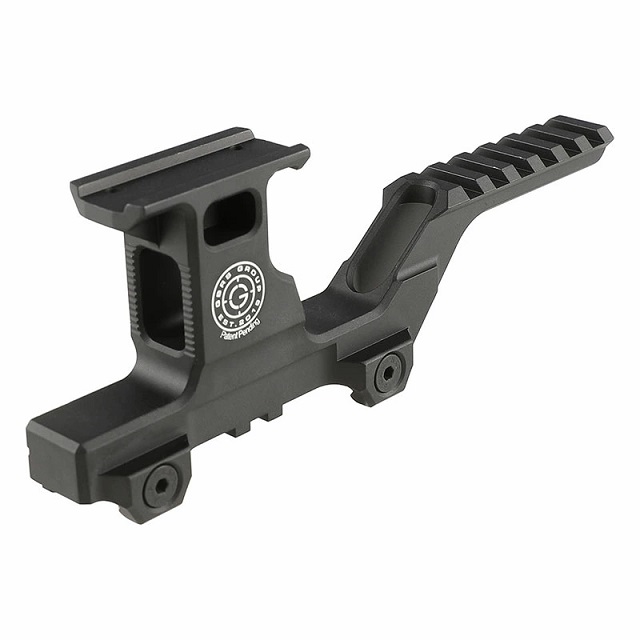 このマウントでアクセサリーを高い位置に配置することで、銃器へ装着しているアクセサリーによりグリップの位置を変える必要や、レールスペースの制限によりサポートハンドの再配置をする必要が無くなります。 そのことにより、視界を遮る障害物を無くし、銃器の重心があるマグウェル上にバランスよく重量を配置することができます。
