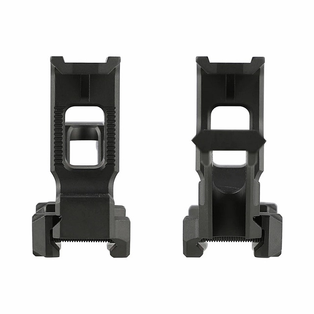 Aimpoint T-1/T-2規格のドットサイトと、PEQなどのレーザーデバイスを一体でマウントすることが可能なハイライズマウント。 ギリシャ神話に登場するヒドラのようなその独特な形状は、銃器の重心や射撃姿勢などが考慮され、効果的にターゲットを捕捉、照準することができる設計となっています。 材質には軽量・堅牢な7075アルミ合金を採用し、表面にはレーザーマーキングによる刻印をリアルに再現。 BKはアルマイト処理、FDEはセラコート加工が施され、高品位な質感で仕上げられています。